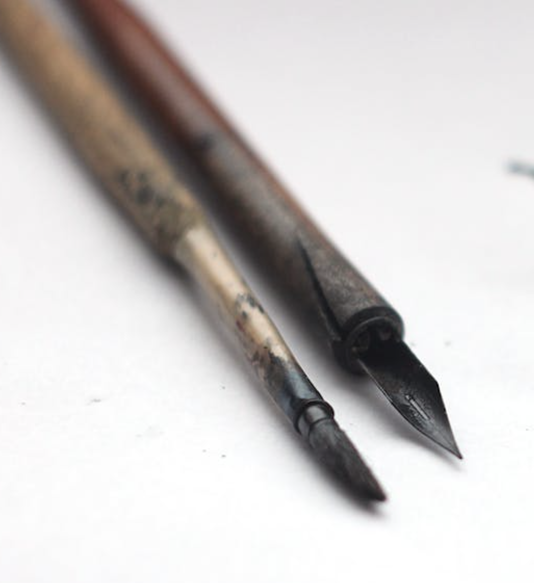 Nibs can be made of metal or bamboo, and usually have a split in them allowing for varied lines and marks when you press lightly or more firmly