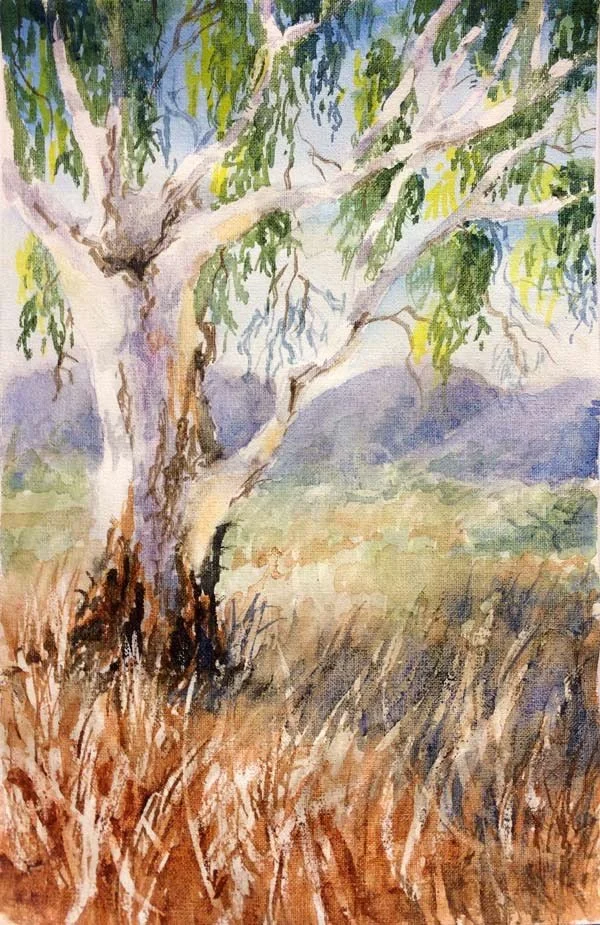Gumtree landscape in Watercolour